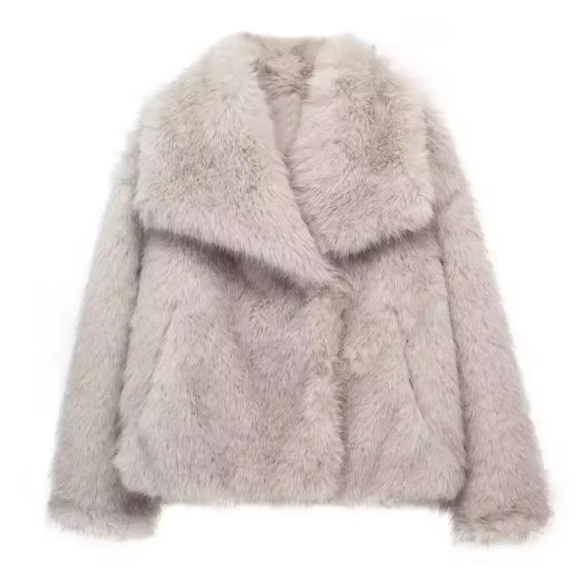 Abrigo corto cuello solapa y manga larga. Bolsillos laterales. Forro interior del mismo tono. Cierre frontal con ganchos metálico.
